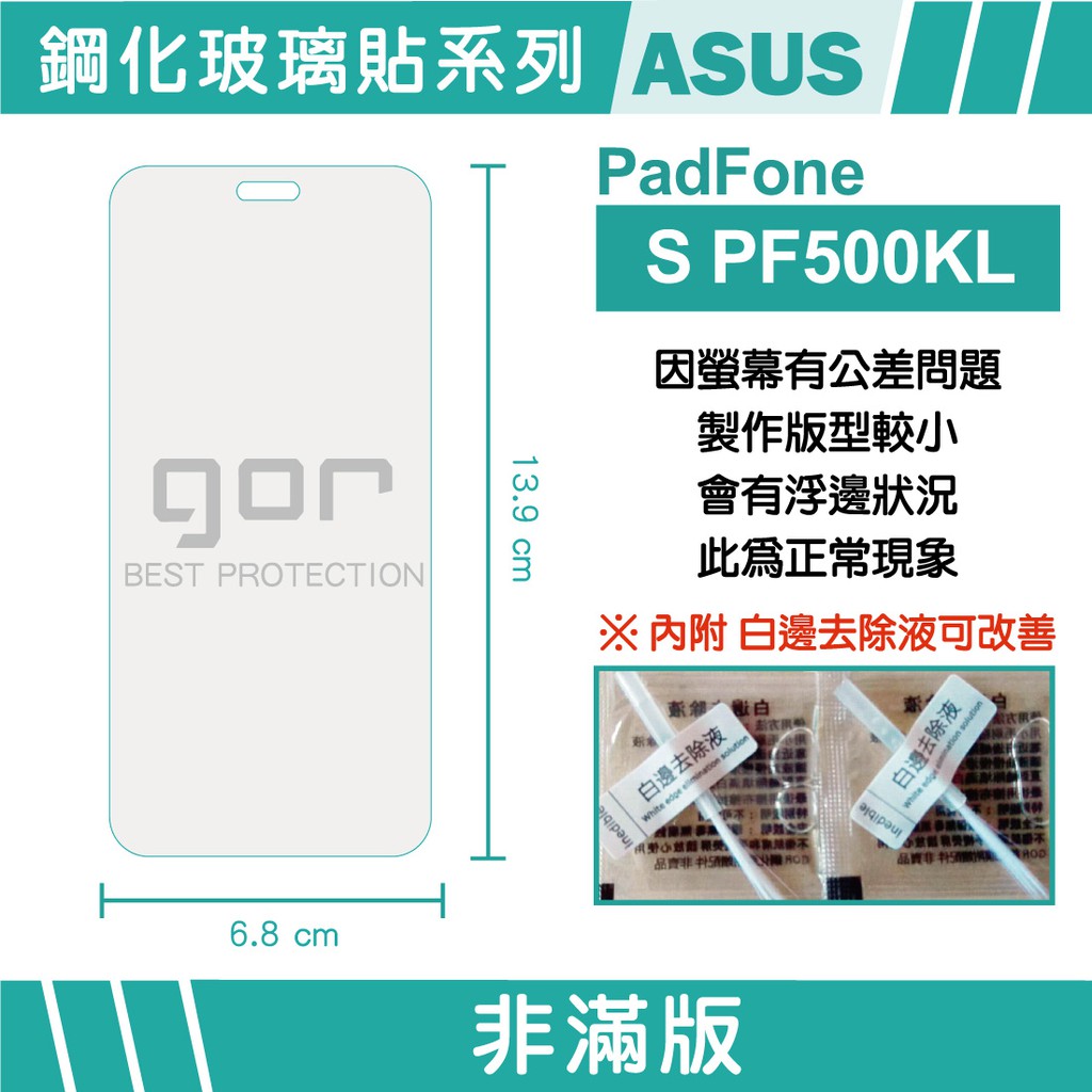 【GOR保護貼】ASUS 華碩 PadFone S PF500KL 9H鋼化玻璃保護貼 全透明非滿版2片裝 公司貨 現貨