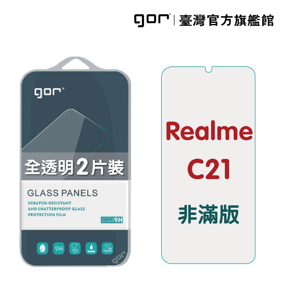 【GOR保護貼】Realme C21 9H鋼化玻璃保護貼 realme c21 全透明非滿版2片裝 公司貨