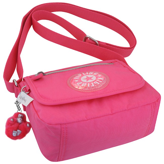KIPLING 粉紅色波紋星星飾牌小型斜背包