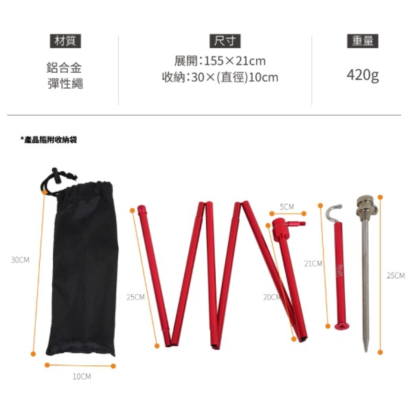 早點名| NUIT 努特 晴空塔 輕量折疊鋁合金燈架 紅色/銀色 NTF216 露營燈架 掛燈架