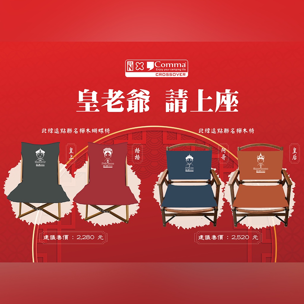 早點名|(特價) Comma 逗點×北緯聯名 皇上蝴蝶椅 藍色 宮廷系列 櫸木椅 露營椅 折疊椅 收納椅 露營折疊椅