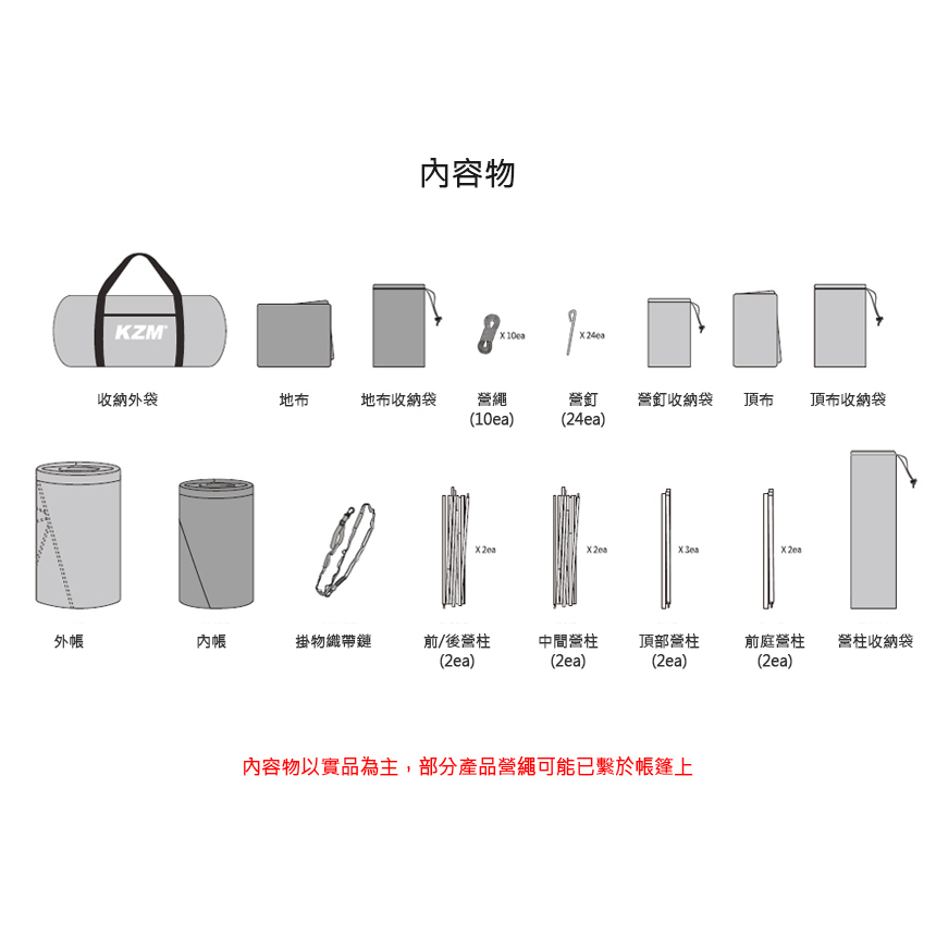 早點名| KAZMI KZM ALBION 阿爾比豪華隧道帳 K231T3T10 4-5人帳 家庭帳 一房一廳 露營