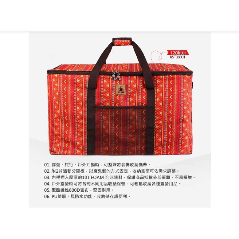 早點名| KAZMI KZM 經典民族風裝備收納袋 120L 露營收納 依附收納 居家收納 旅行收納 旅行袋
