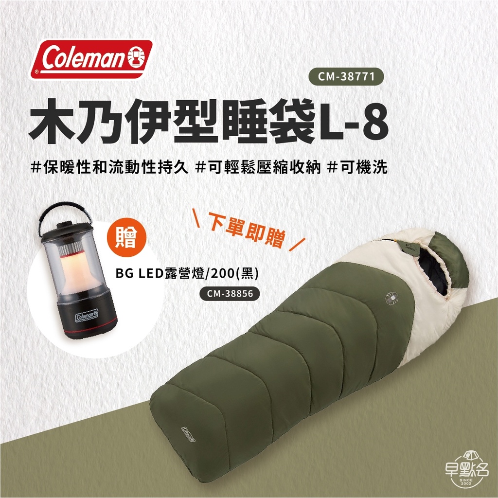 早點名|買就送營燈 Coleman TASMAN 木乃伊型睡袋 L-8 / CM-38771 保暖睡袋 可機洗 睡袋