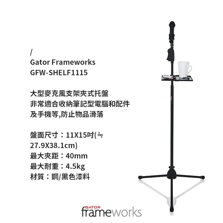Gator Frameworks GFW-SHELF1115 麥克風架 夾式托盤 置物盤 托盤 麥架 夾式置物盤