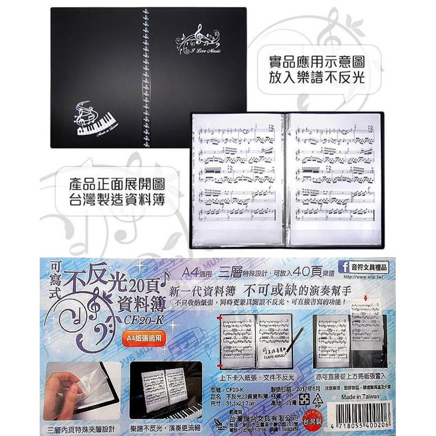 【台灣製】A4樂譜資料夾 不反光資料夾 20頁 資料夾 曲譜本 樂譜夾 譜夾 畫冊 文件夾 不反光樂譜 CF20