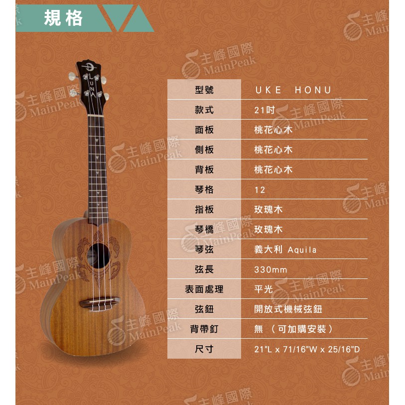美國 LUNA HONU 21吋烏克麗麗 夏威夷圖騰 雷射雕刻 海龜 桃花心木