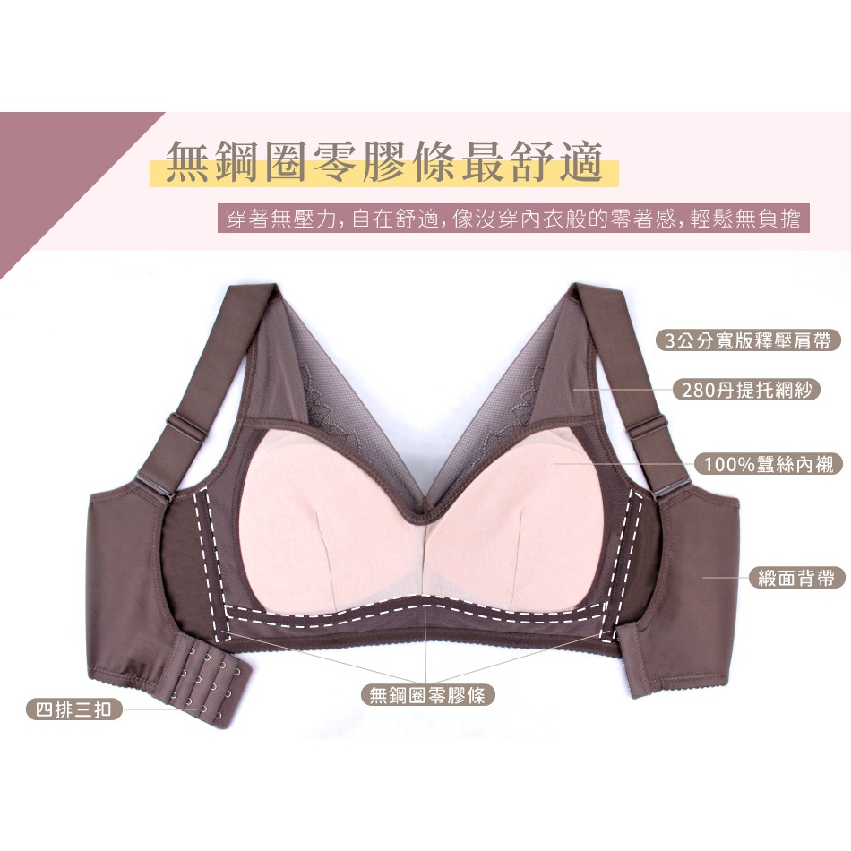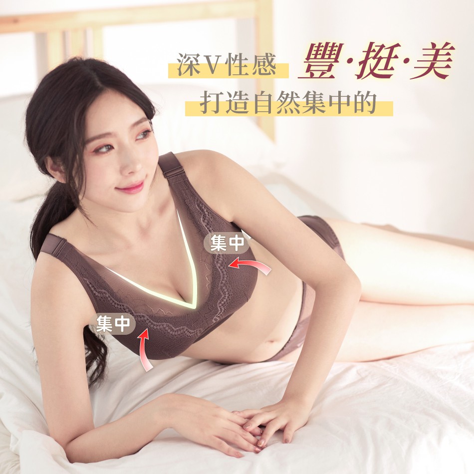 艾波迷亞(5109) 減壓PLUS系列-深V美人款 蠶絲內衣 無鋼圈內衣 可拆式罩杯 睡眠內衣 集中包覆 包副乳 防外擴