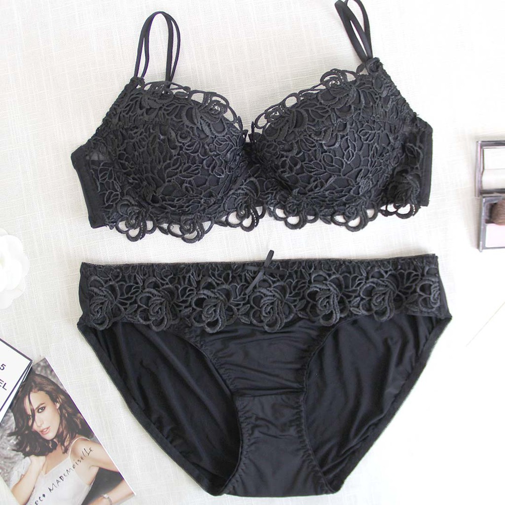 【艾波迷亞】法式情人 縷空刺繡 鋼圈內衣 素色內衣 集中 成套 7058