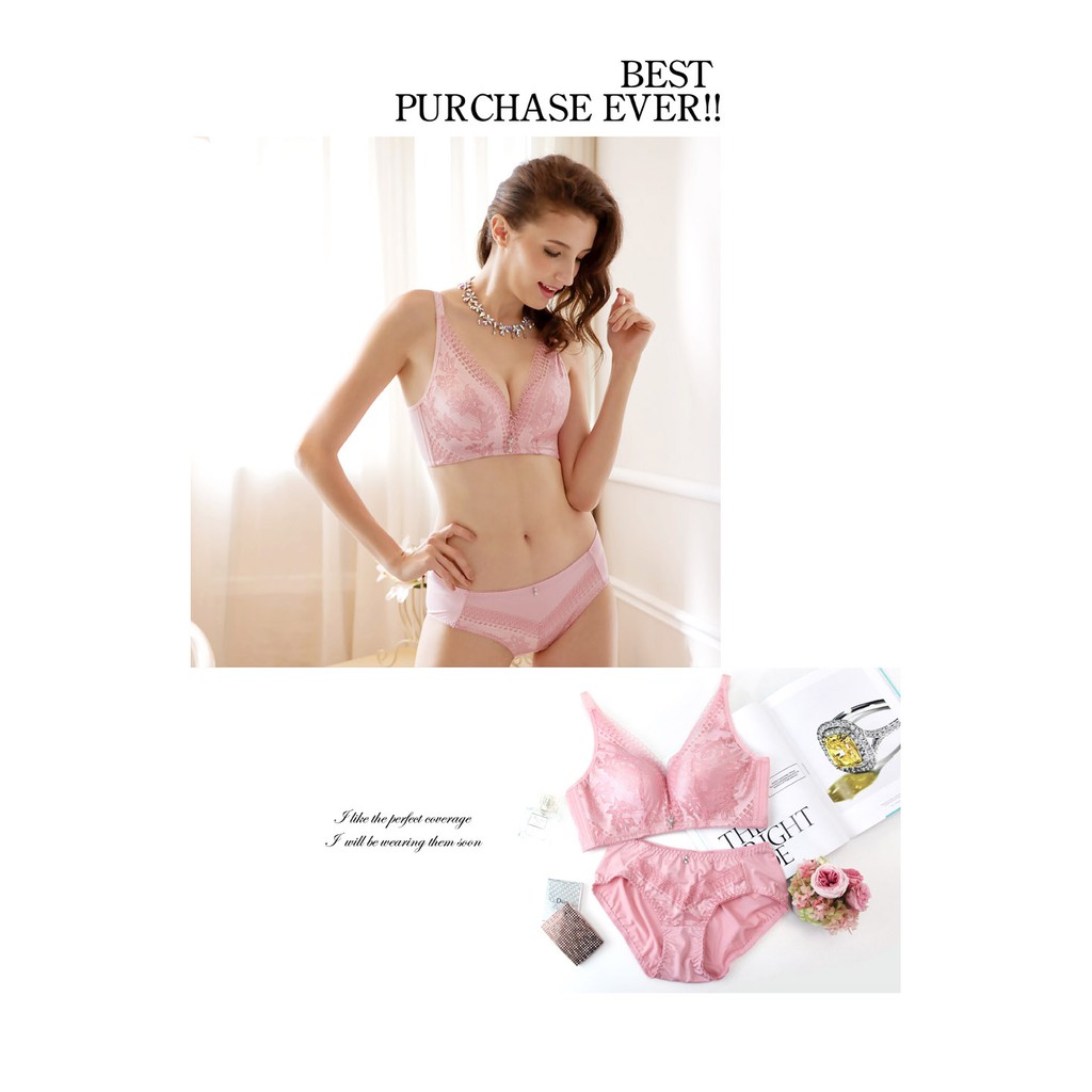 艾波迷亞 深V舞動蕾絲無鋼圈內衣 成套 藝人推薦 大罩杯 無痕內衣 女內衣 集中深V 3577