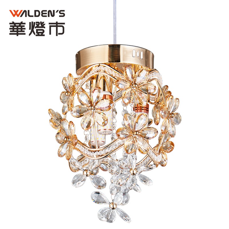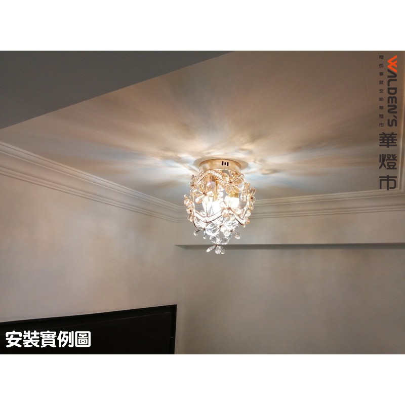 【華燈市】金色茶花水晶玻璃3燈吸吊二用燈 0402621 燈飾燈具 水晶吊燈餐吊燈客廳燈玄關燈走廊燈