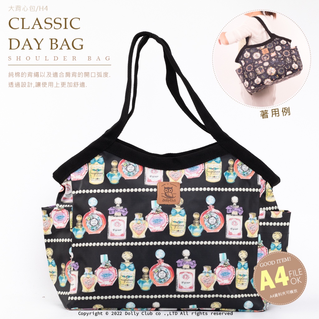 【Dolly Club】大背心包-托特包-大容量-兩天一夜外出-H4-珍珠手繪水彩香水-黑-635-防水布包