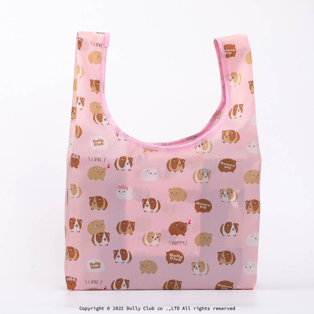 【Dolly Club】環保好收小提袋 折疊購物袋 迷你 防水 隨身袋|N4|天竺鼠恰恰|粉|1132