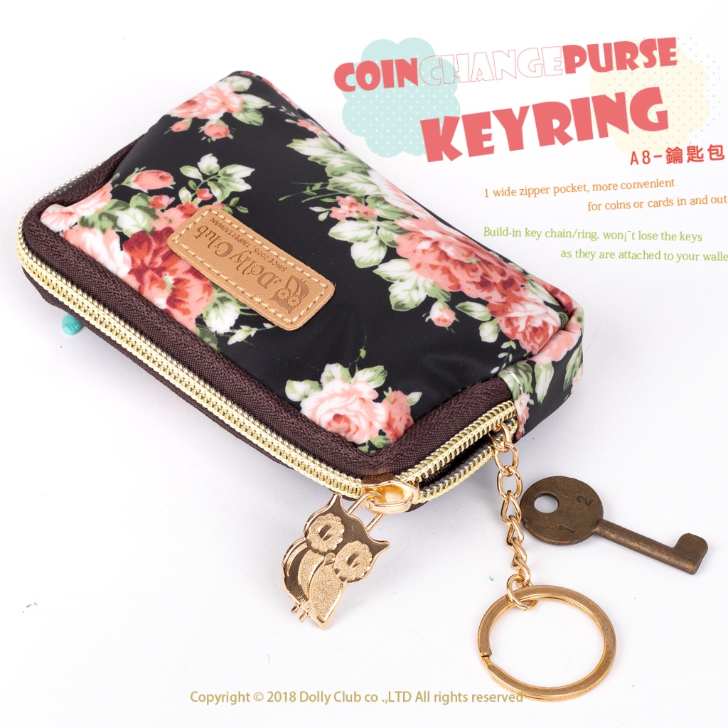 【Dolly Club】鑰匙包|多色|A8|拉鍊鑰匙包|汽車鑰匙|感應扣收納|臺灣製防水包|玫瑰花瓣落下時|黑|447