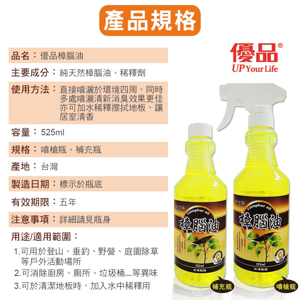 【優品】整箱購 - 樟腦油 (補充) 525ml(12入/箱)防蚊 防小黑蚊 防蟲 蚊蟲叮咬 預防叮咬 香茅油 驅蚊
