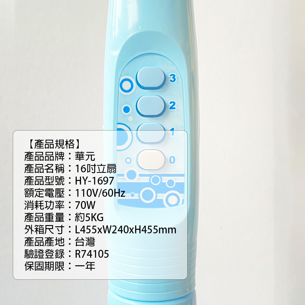 華元 16吋立扇 HY-1697 16吋電扇 電風扇 涼風扇
