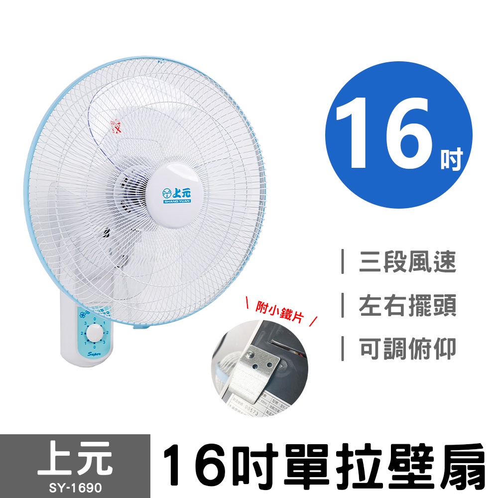 【上元】16吋單拉壁扇 SY-1690 壁掛扇 電風扇 壁扇 掛扇 (葉片改版三葉關刀葉)