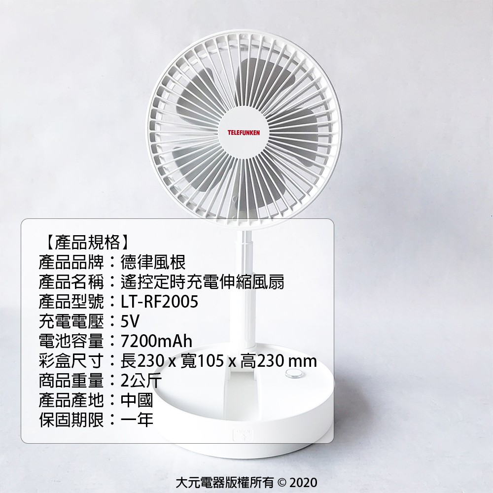 德律風根 遙控定時充電伸縮桌立扇 (附遙控器) LT-RF2005