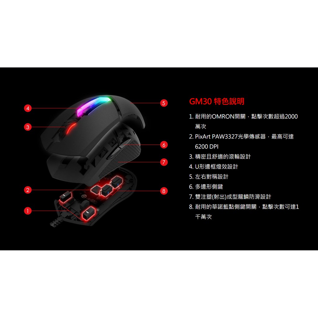 msi 微星 MSI Clutch GM30 電競滑鼠 有線滑鼠 左右對稱設計