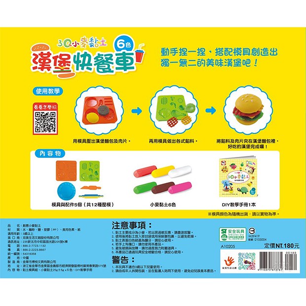 双美 3Q小麥黏土:漢堡快餐車(6色小麥黏土+12款壓模+1本DIY教學手冊)
