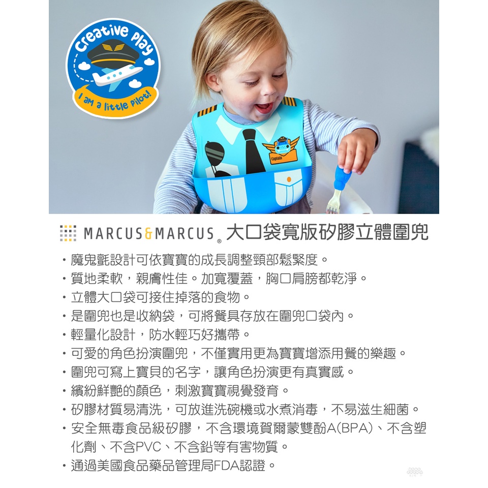 【加拿大MARCUS&MARCUS】大口袋寬版矽膠立體圍兜 (4款可選)