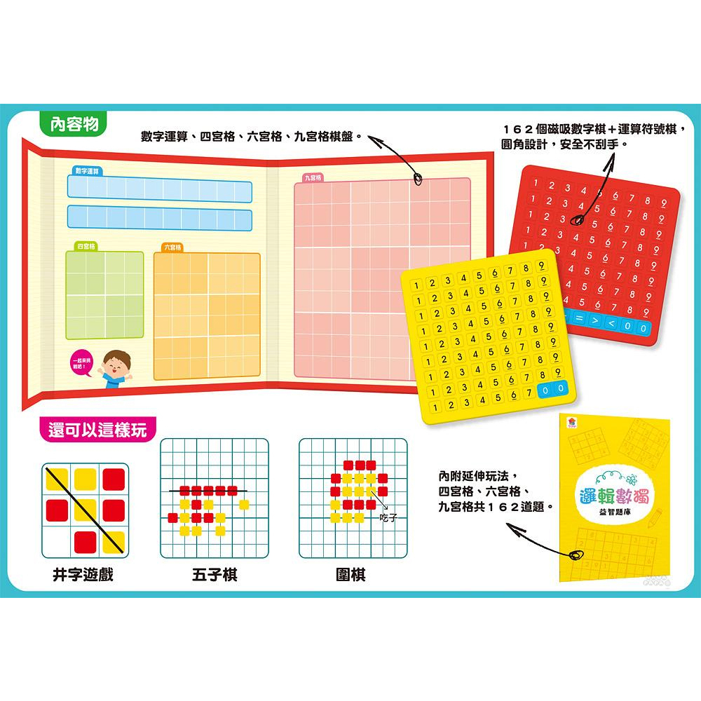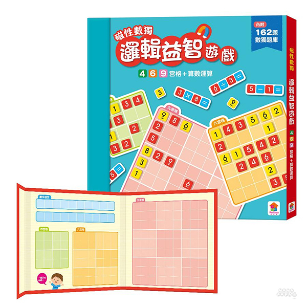 双美文創 磁性數獨 邏輯益智遊戲 四六九宮格+數字運算(內附磁吸數字、運算符號棋162個+數獨題庫1本)