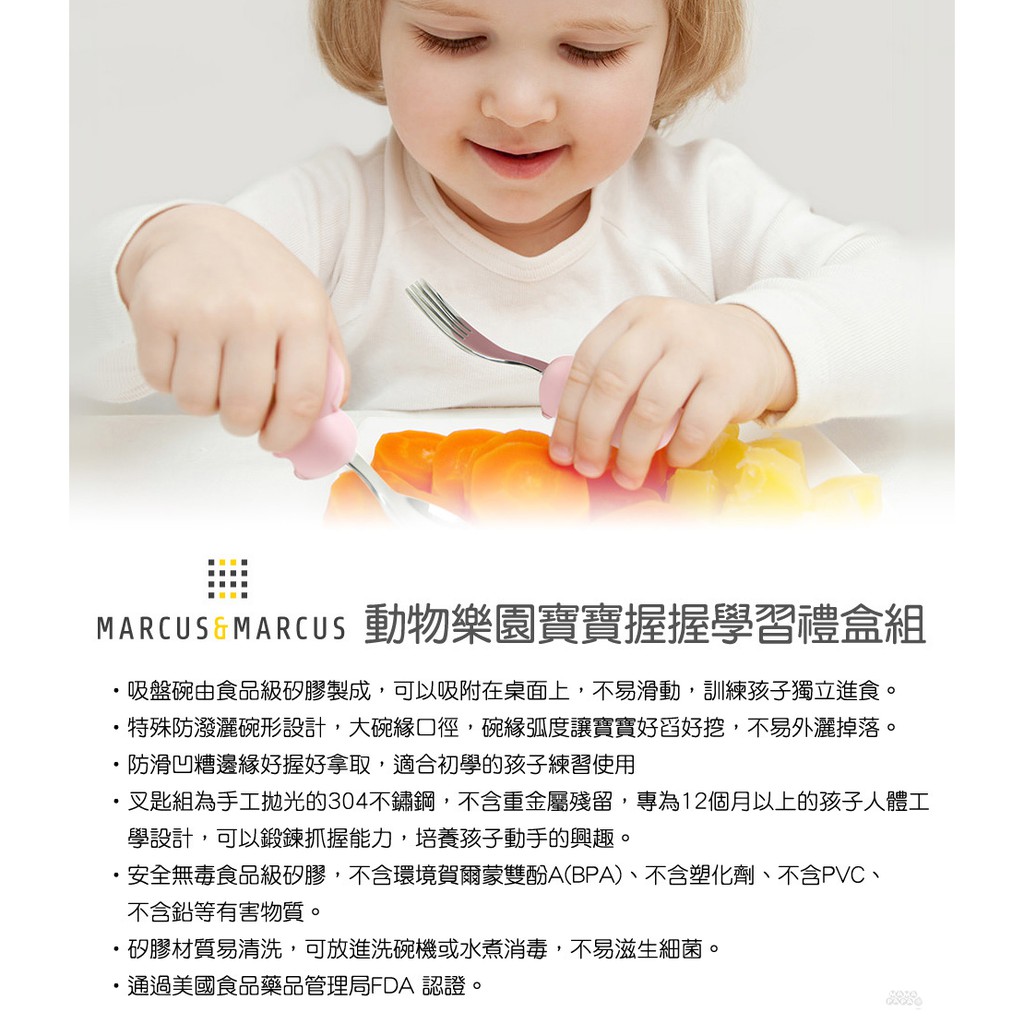 【加拿大MARCUS&MARCUS】動物樂園寶寶握握學習禮盒組-鯨魚(紫)(吸盤碗+叉匙組)