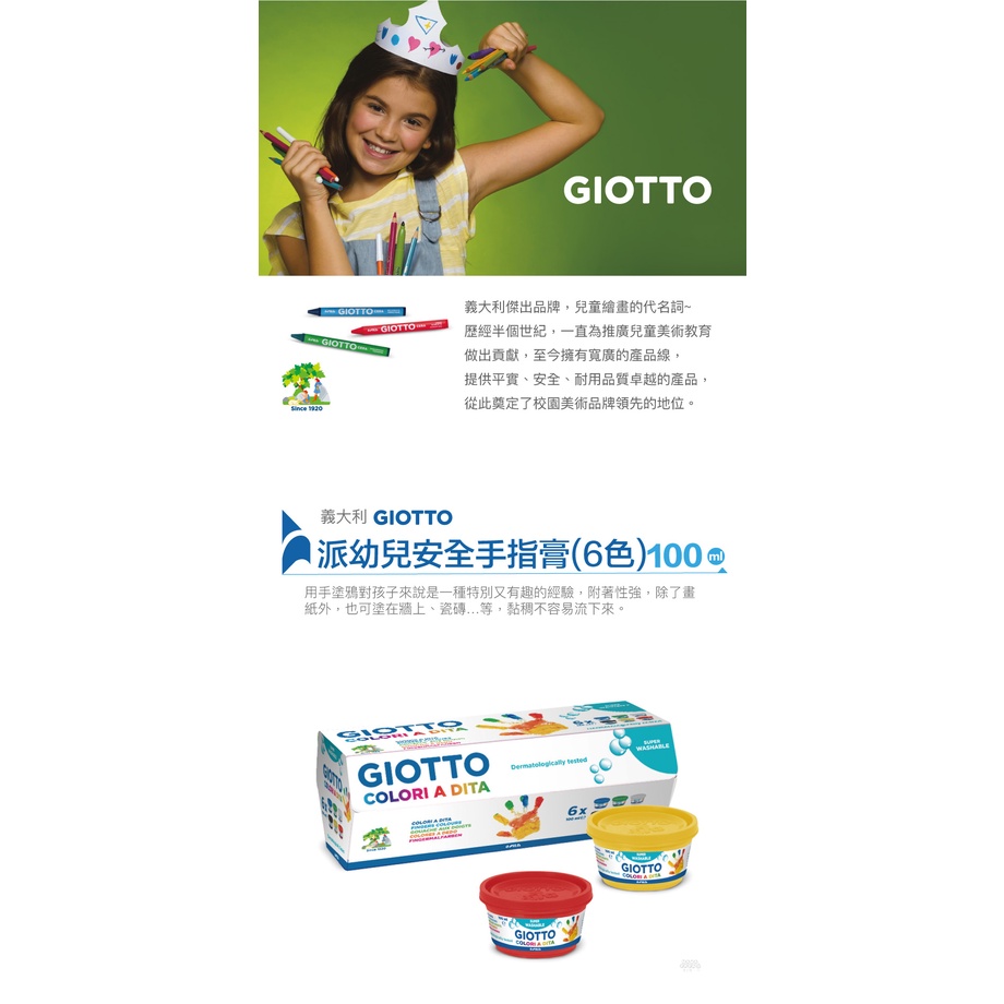 【義大利GIOTTO】幼兒安全手指膏(6色)100ml 產地:法國