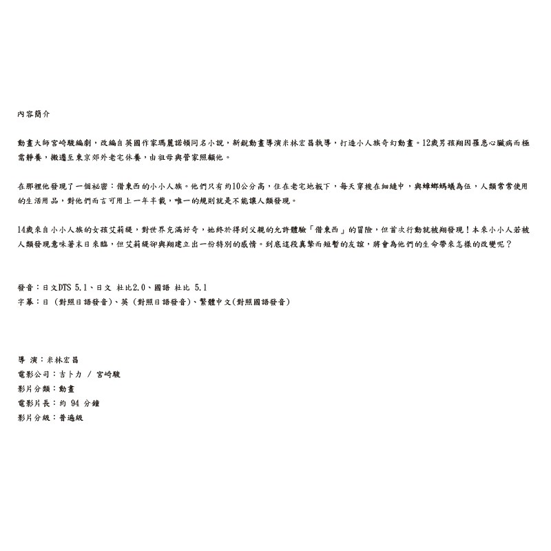 【宮崎駿卡通動畫】借物少女艾莉緹DVD
