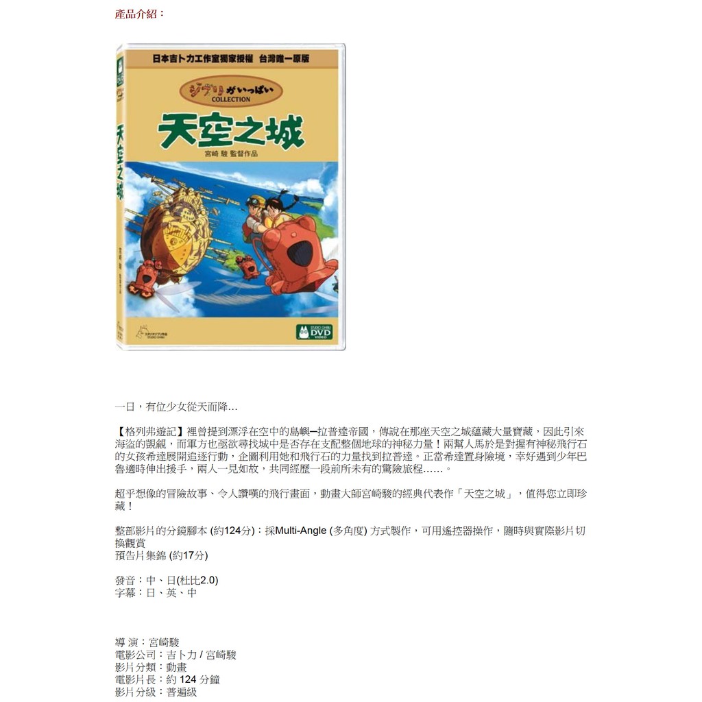 【宮崎駿卡通動畫】天空之城DVD(二碟精裝版)