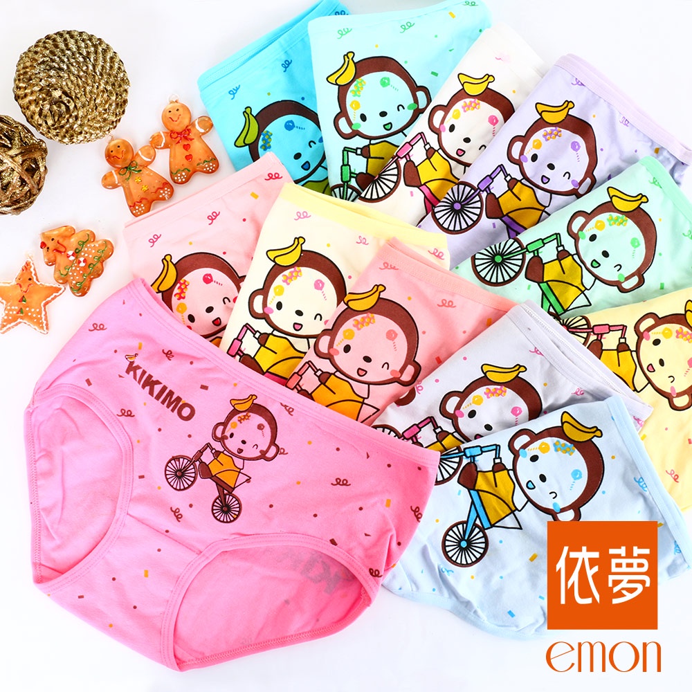 emon 單車小猴 舒柔棉中腰貼身褲 3件組 (隨機色)