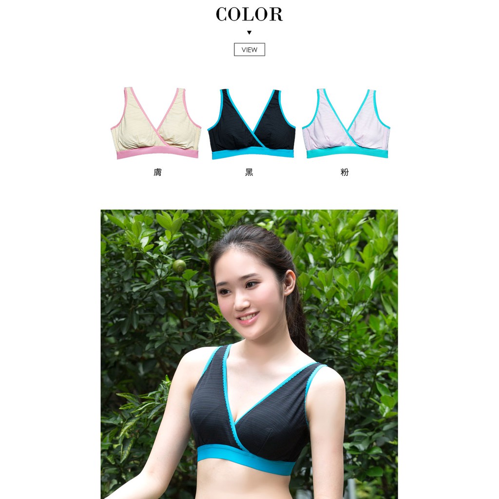 emon 奈米銀 交叉剪裁無鋼圈背心內衣 哺乳適穿(黑)