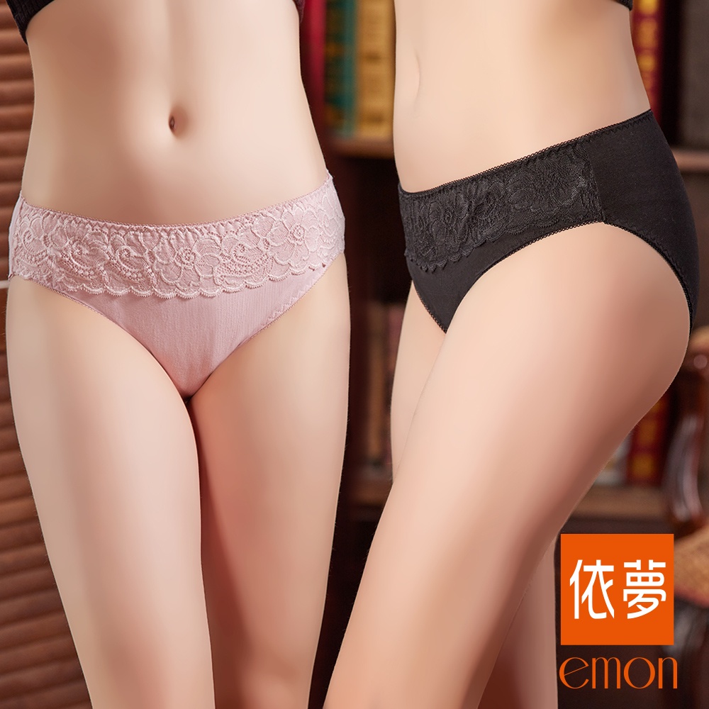 emon 石墨烯 素色蕾絲棉質低腰三角褲(四色任選)