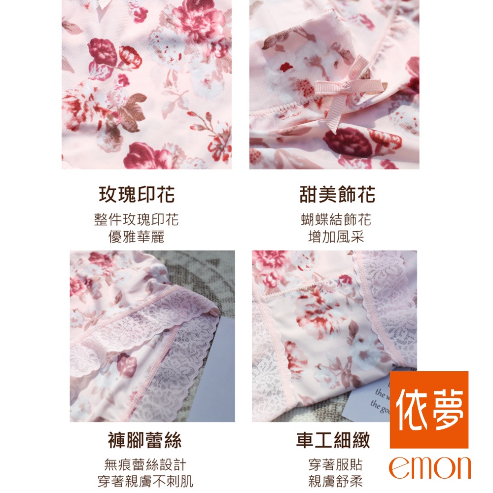 emon 玫瑰盛宴 石墨烯低腰無痕蕾絲平口褲(六色任選)