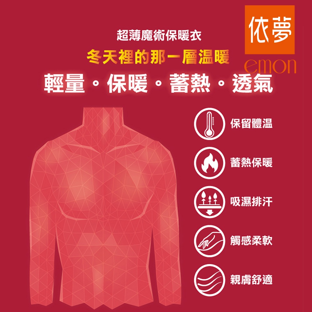 emon 一體成型 超薄魔術保暖衛生衣(6色任選)