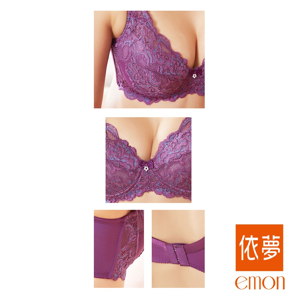 emon 舒適美波浪漫蕾絲內衣C罩杯(葡萄紫)