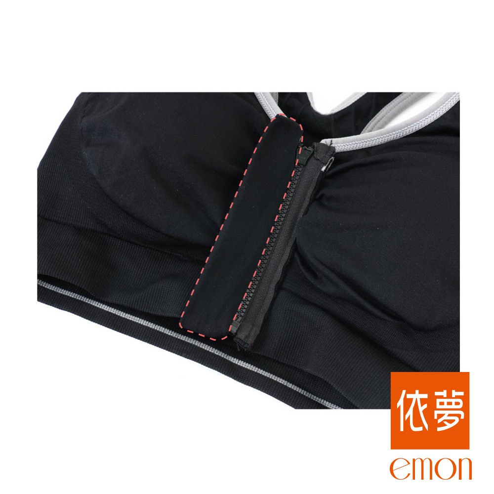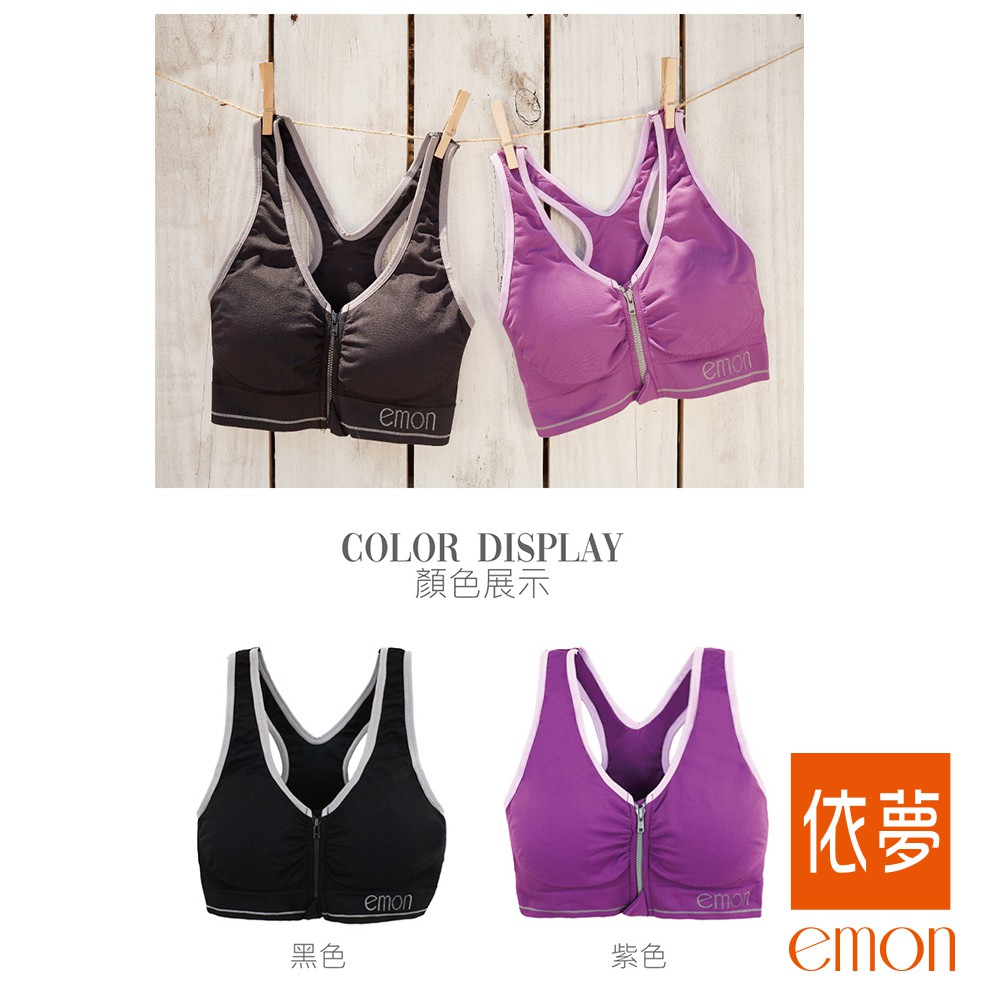 emon 一體成型 前開式拉鍊 防震 輕量運動內衣 黑 紫 任選