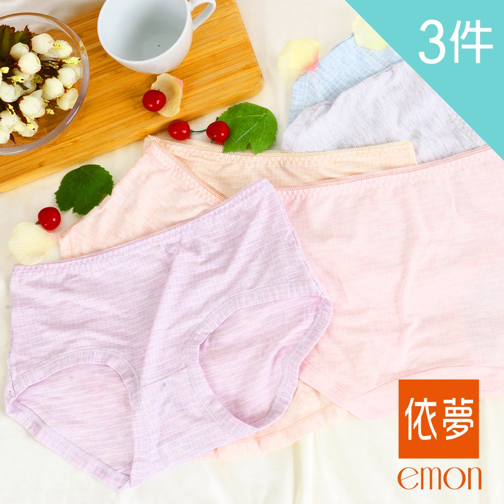 emon 繽紛格紋 舒柔三角褲 3件組(隨機色)