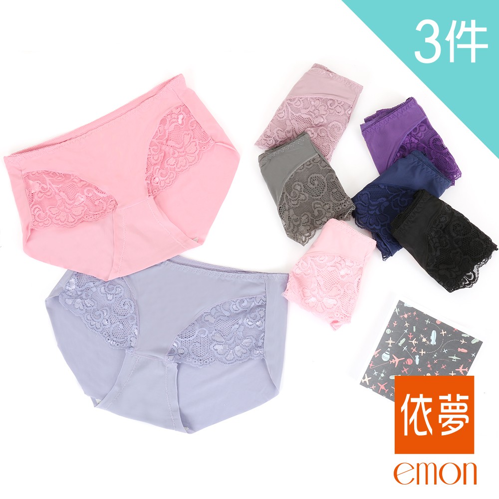 emon 無痕涼感蕾絲三角褲 3件組(隨機色)