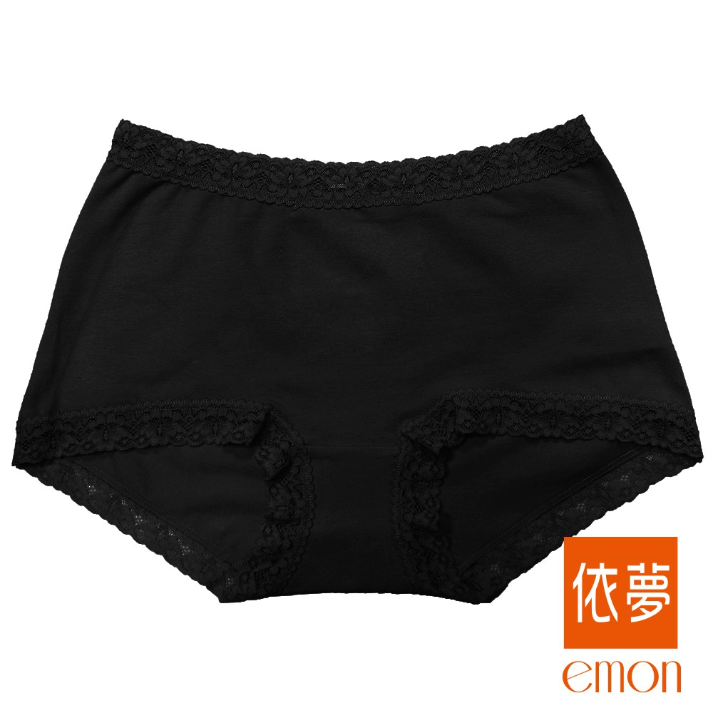 emon 素色棉質舒適高腰平口褲(黑) 台灣製