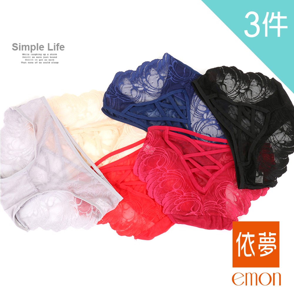 emon 低腰性感交叉蕾絲三角褲 3件組(隨機色)