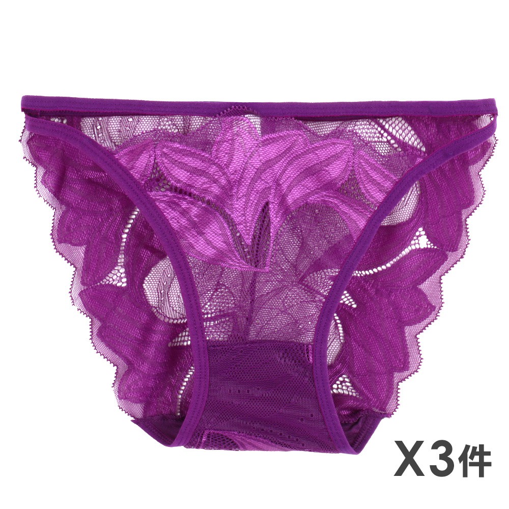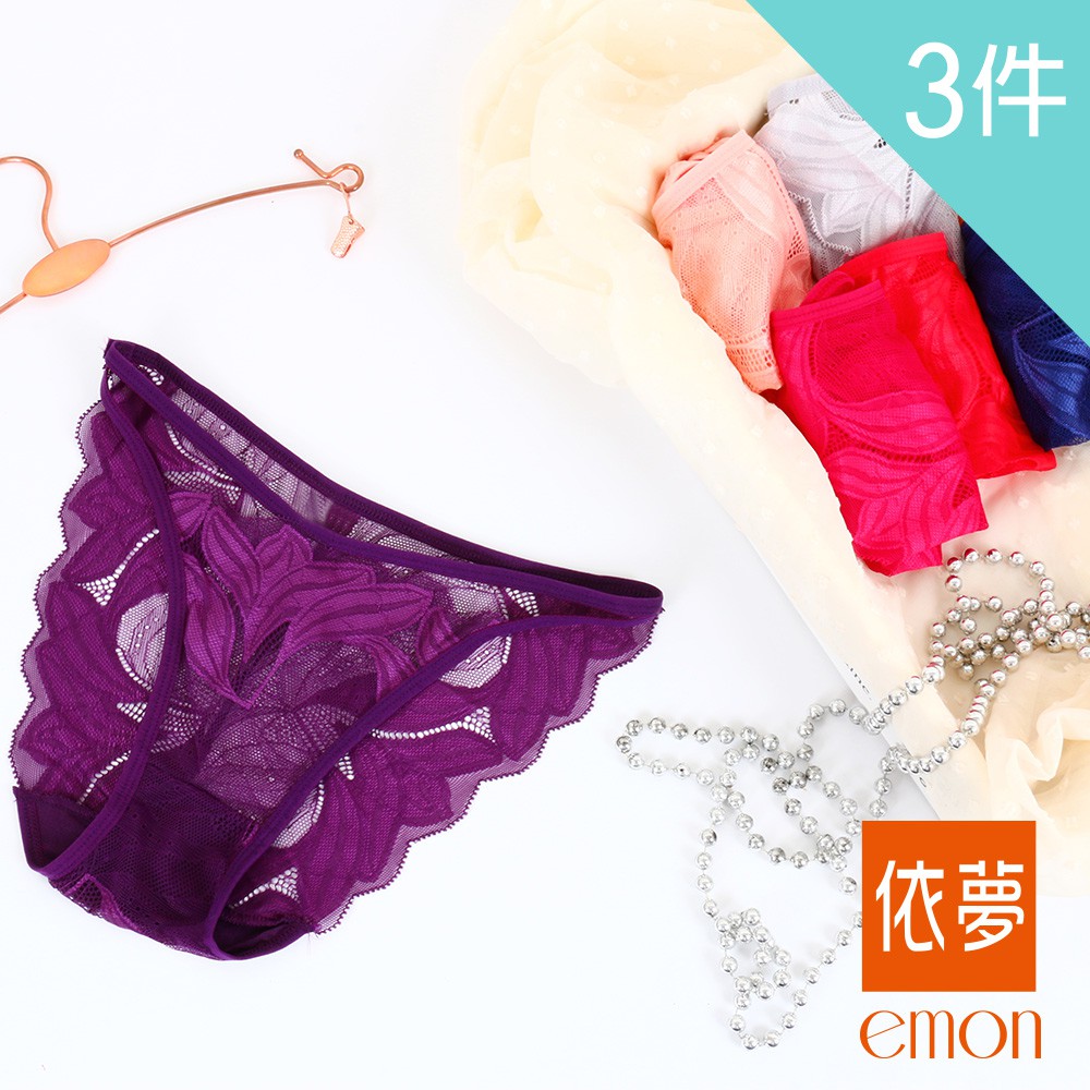 emon 性感透膚葉子蕾絲三角褲 3件組(隨機色)