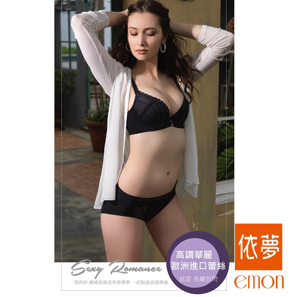 emon 甜戀凡爾賽 膠原蛋白 水肌保養平口褲(俏麗黑)