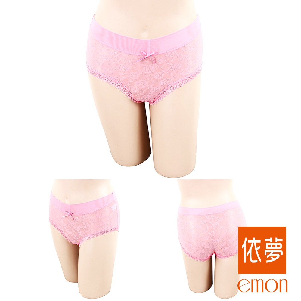 emon 玫瑰情人 緹花透膚高腰三角褲 3件組(隨機色)