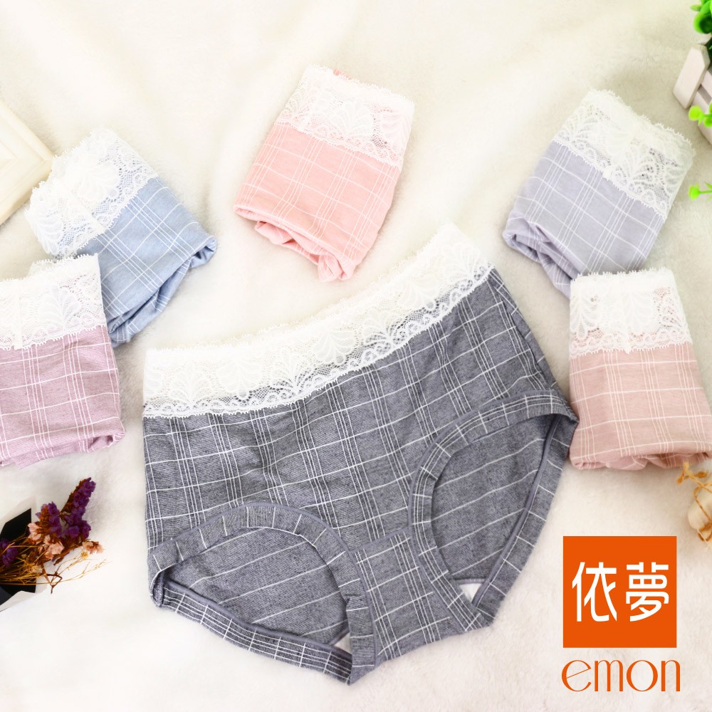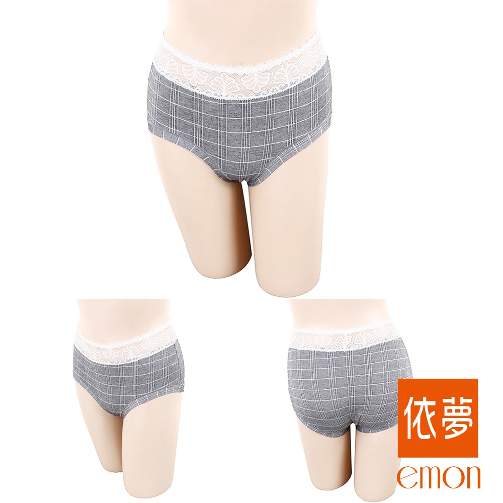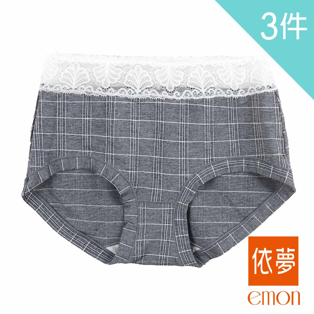 emon 俏皮格紋 蠶絲蛋白低腰無痕三角褲 3件組(隨機色)