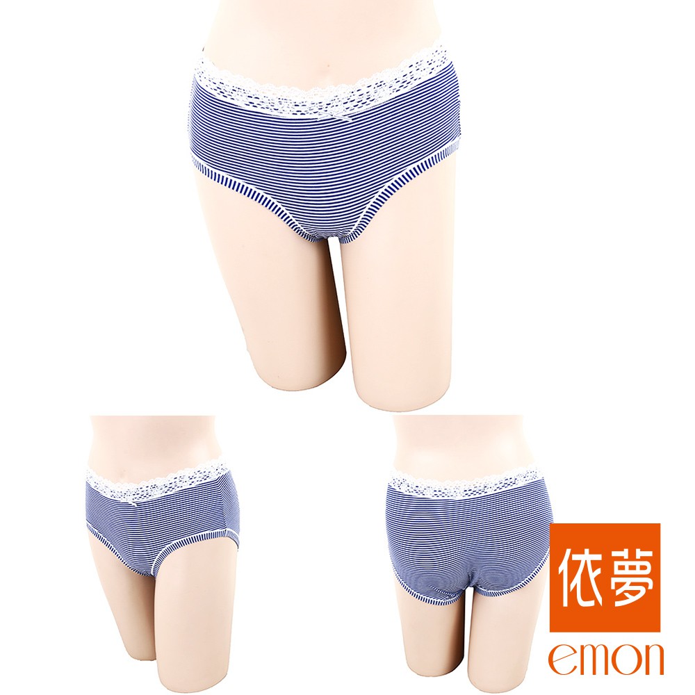 emon 悠遊青春 條紋蕾絲舒棉貼身褲 3件組(隨機色)