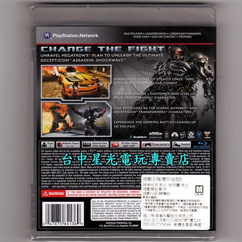 PS3原版片變形金剛3 黑月降臨 英文美版全新品【特價優惠】台中星光電玩