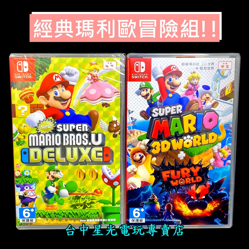 經典優惠【NS Switch】 New 超級瑪利歐兄弟U 豪華版+瑪利歐3D世界 + 狂怒世界 中文版全新品【台中星光】