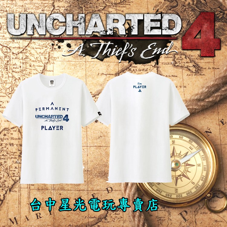 【特價優惠】SONY原廠授權 秘境探險4 盜賊末路 白色 PLAYER 玩家 T-shirt T恤 【L號】台中星光電玩