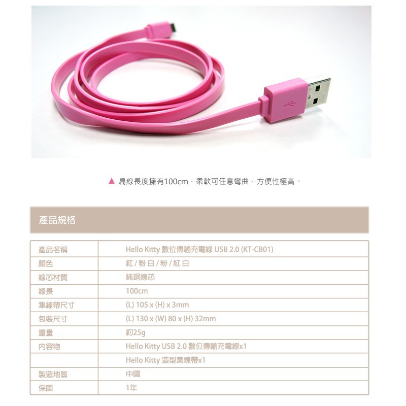 【PS4週邊】Hello Kitty 粉色 Micro USB 數位傳輸線 手把充電線【KT-CB01】台中星光電玩